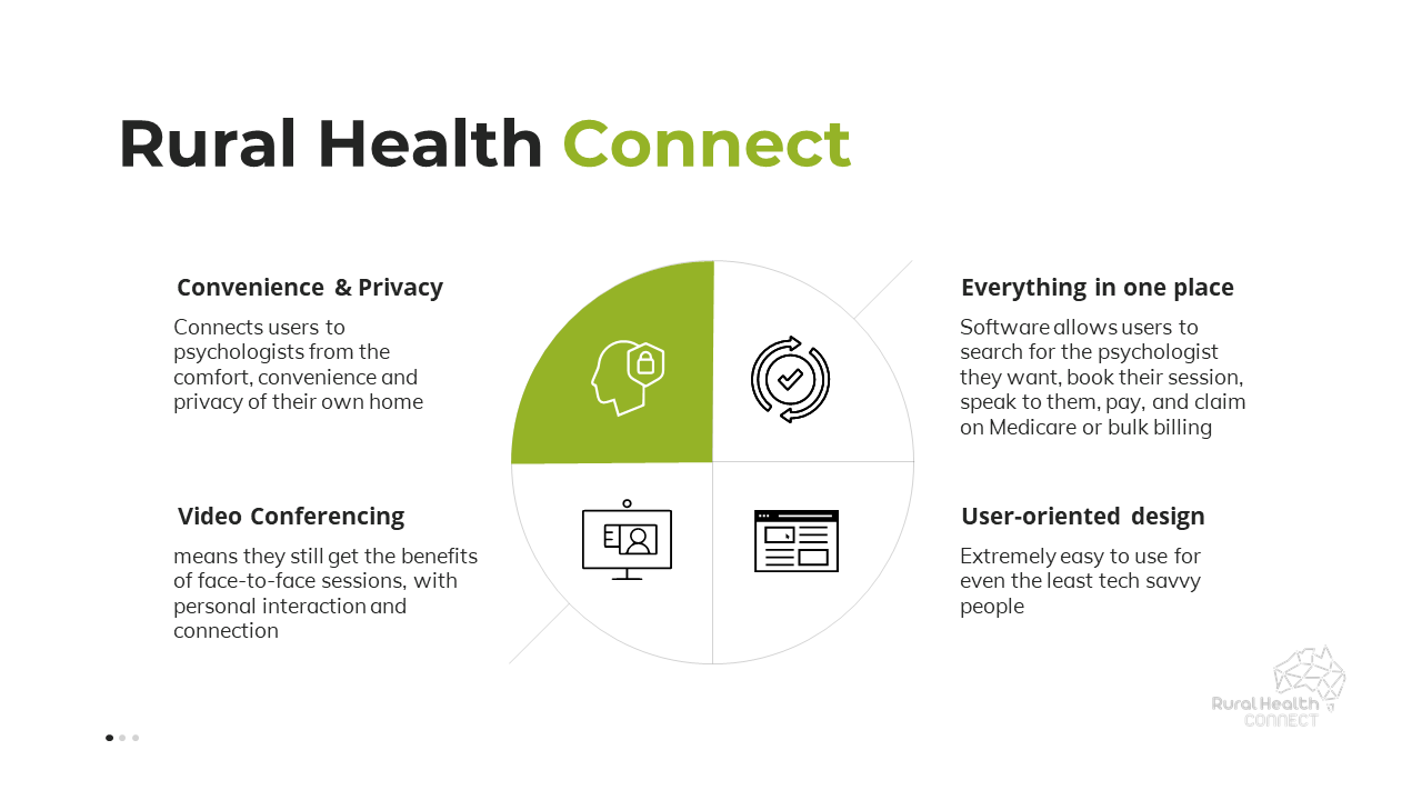 Targeting the rural communities, Rural Health Connect approached us to create a video explainer that was going to be used to educate end customers and psychologists who have never engaged with clients online. Engaging and retaining visitors is essential for an online service and video has repeatedly shown to produce improved outcomes. Based on online surveys, 72% of customers would rather learn about a product or service by way of video.